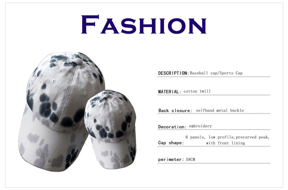 > 6548-2006 Wholesale 100% Cotton Twill 6 panels Baseball cap black/white color tie-dyed cotton twill