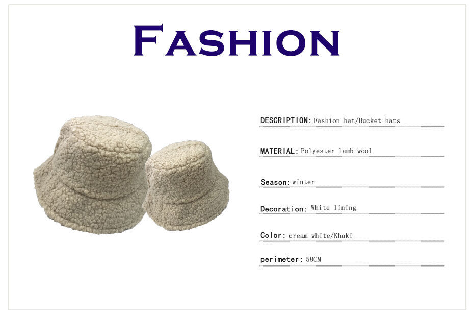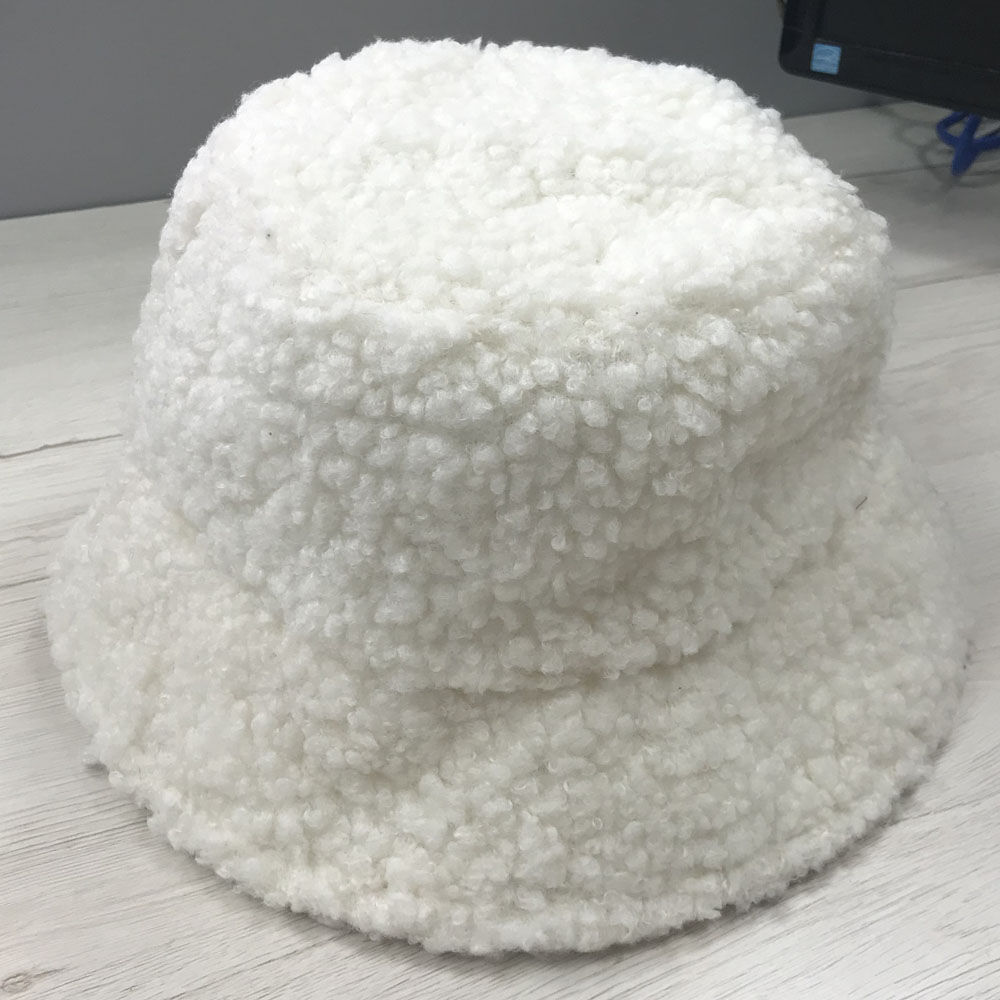 > HA0513-06 Winter Polyester lamb wool fisherman bucket hat solid color basin hat women