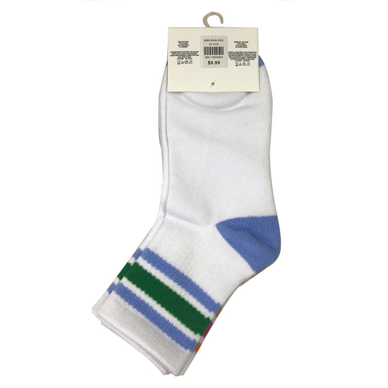 Ladies 79% cotton 19% polyester 2% spandex knitted 2PK demi crew socks, 2 pair/pack, 32g/pair, 144GG,ATHLETIC STRIPE