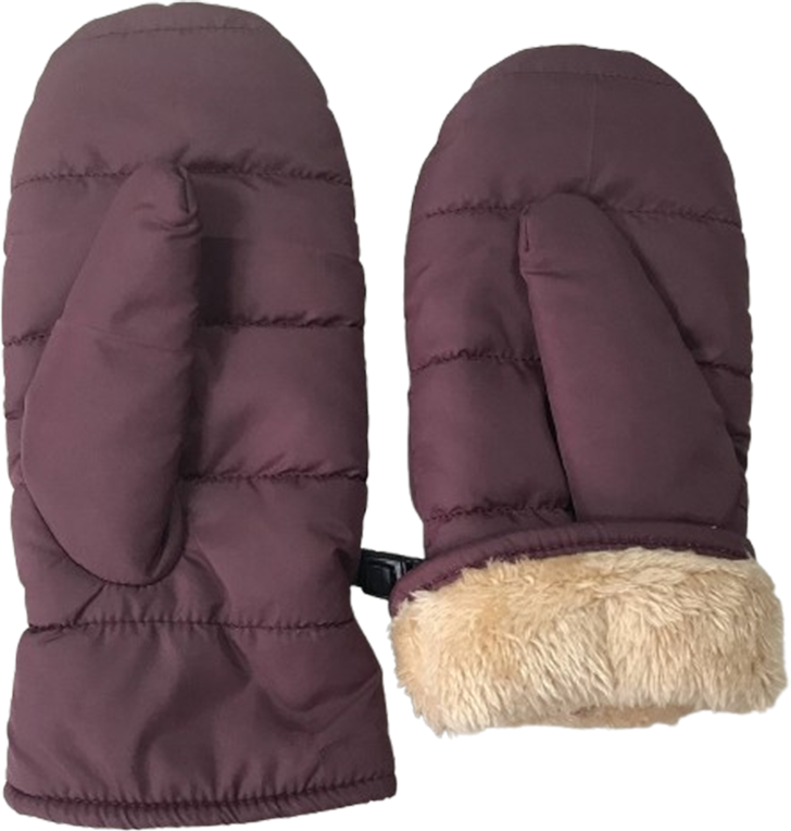 with fleece lining inside.  with buckle between right and left mitten.