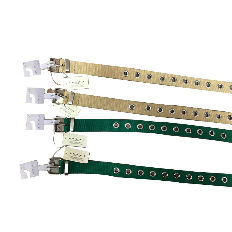 Style no.6580-2303: Ladies 100% polyester woven belt, belt width: 3cm Length 36" 38" 40" 42" 44" metal eyelets along belt, single prong roller buckle FOB SHANGHAI