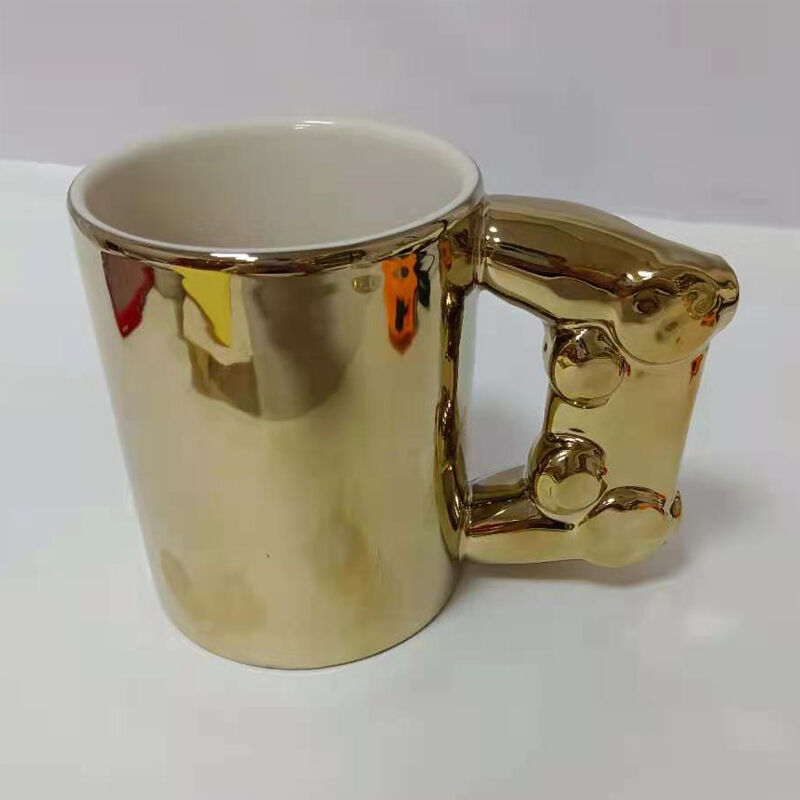 > 072 Fancy Golden Milk Mugs Golden Ceramic Cup and Mugs Promotional Gift Coffee Mugs
